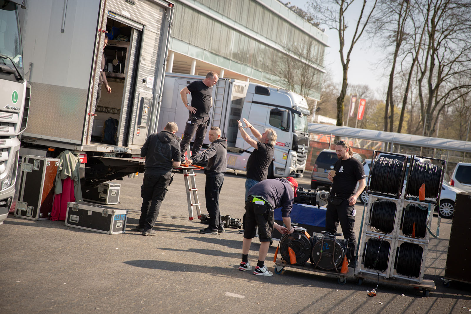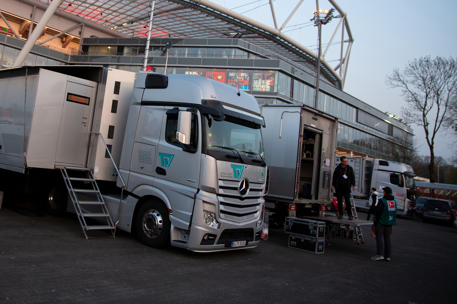 У день трансляції, десь за шість з половиною годин до стартового свистка, Екі Керер та Даніель Керстен займають свої робочі місця у пересувній телевізійній станції (ПТС) TopVision, котра вже стоїть у технічній зоні стадіону.
