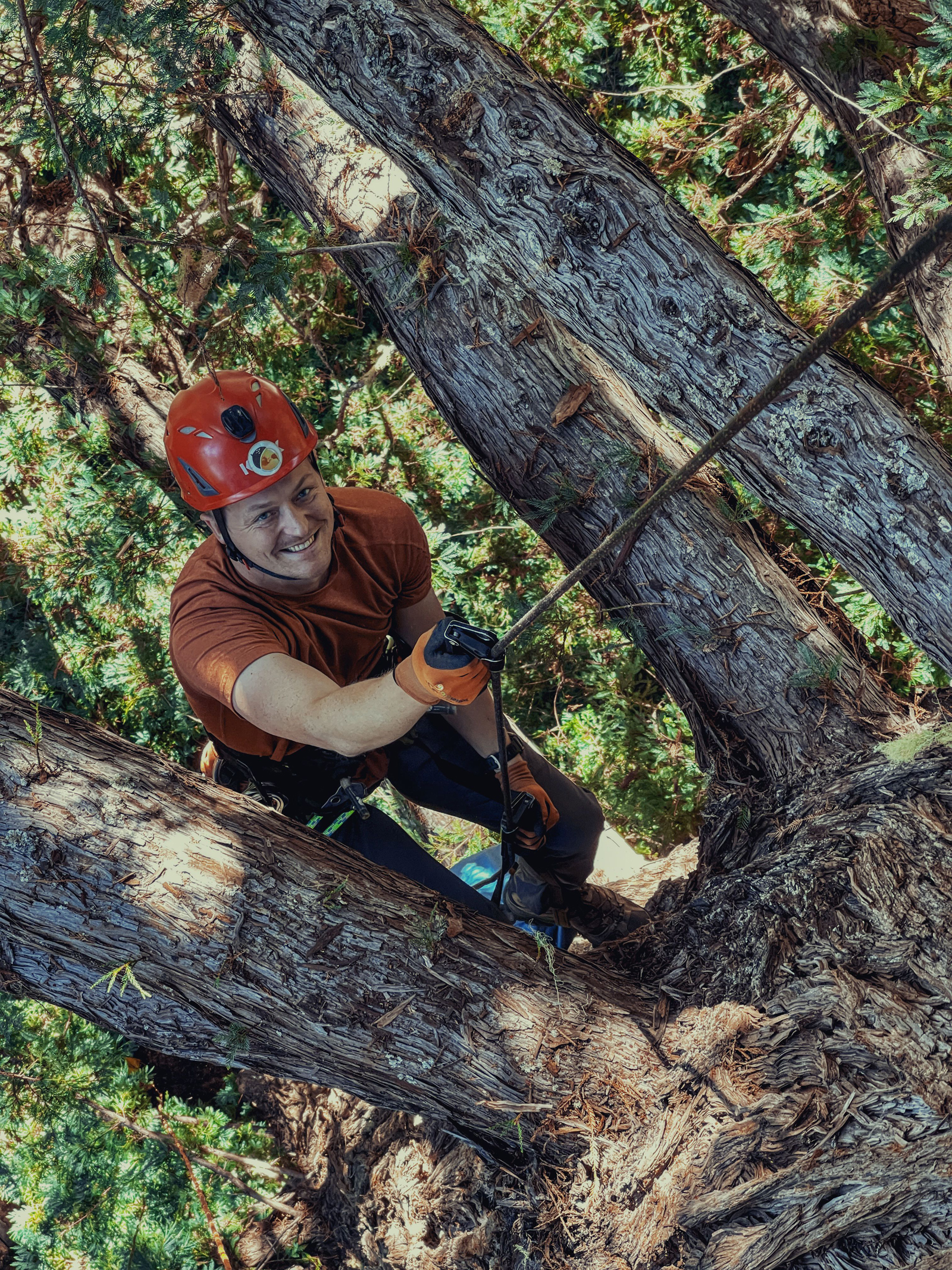 Томас Rex Беверлі з допомогою двох альпіністів підіймається на верхівку секвої