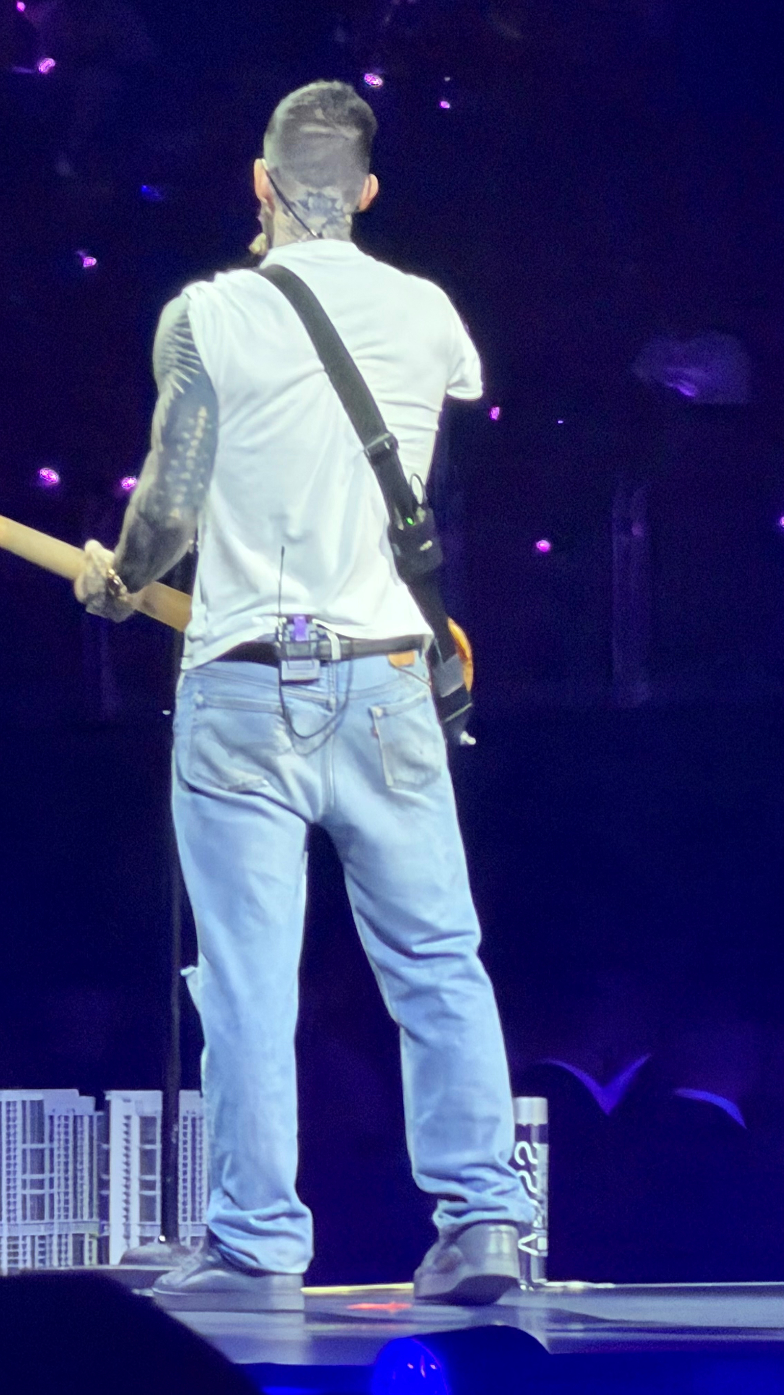 Фронтмен гурту Адам Левін з бодіпаком Spectera та своєю системою персонального моніторингу на сцені концертного туру Maroon 5 "Love Is Like" (фото Рікі Гарсія)