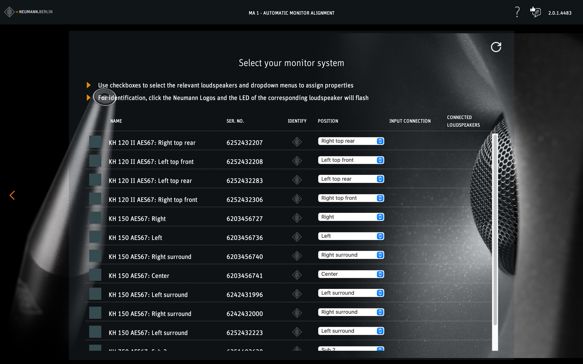 Система автоматичної корекції студійних моніторів Neumann MA 1 відповідно до умов приміщення відтепер доступна і для багатоканальних систем
