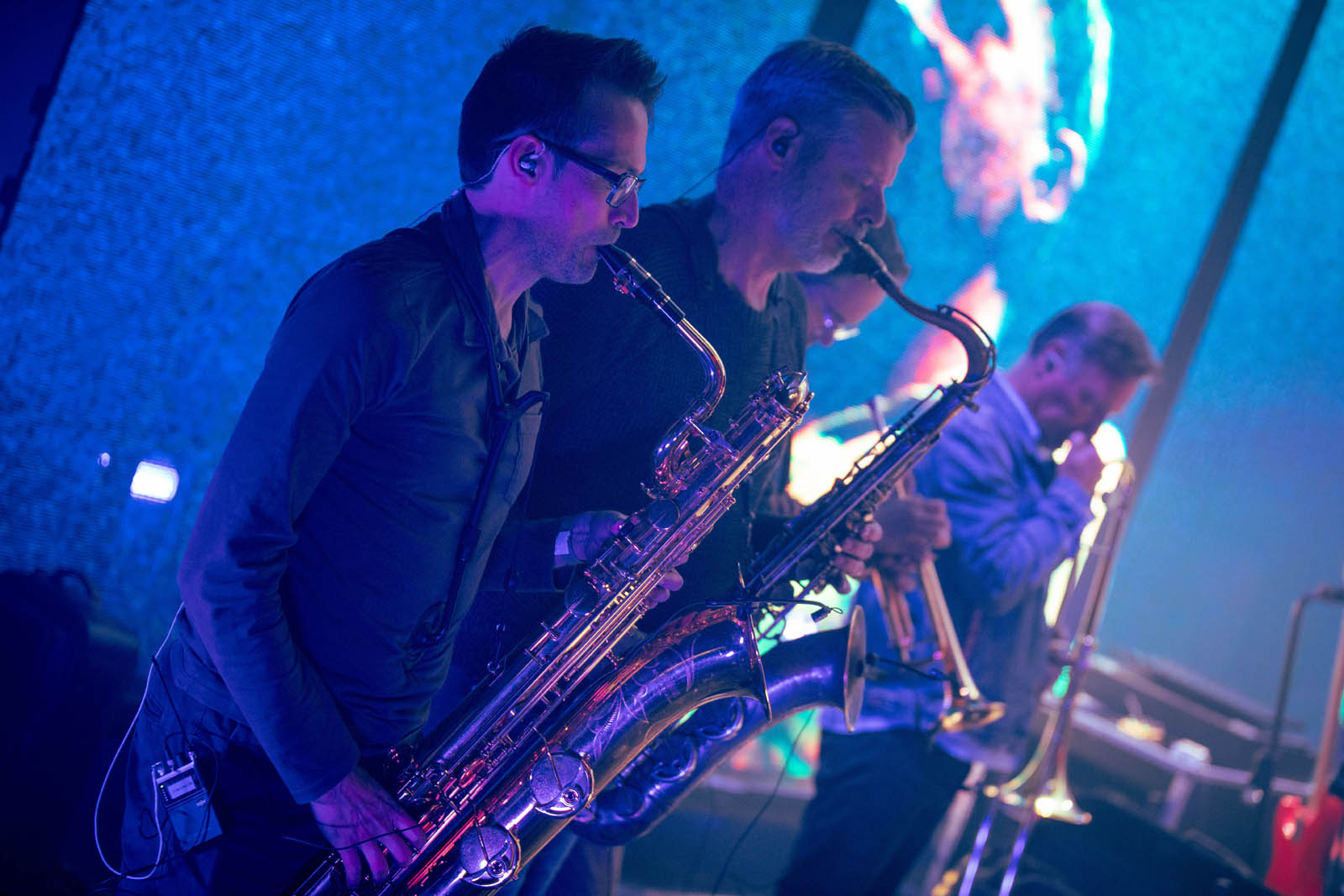 Музиканти гурту, котрі виступають з дерев'яними та мідними духовими інструментами, тепер працюють з двобічноспрямованими поясними модулями Spectera, кожен з котрих одночасно передає/приймає мікс на IEM-навушники виконавця та звучання інструменту (через підключений інструментальний мікрофон Neumann MCM 114)