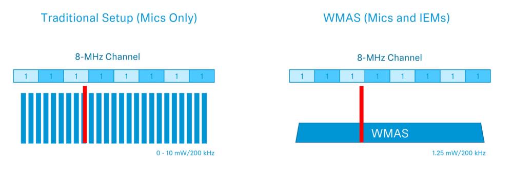 Багатоетапні випробування показали, що WMAS ефективно обходить декілька джерел одночасних перешкод. Так що, з цією системою звукорежисери мають більш ніж достатньо часу, щоб виявити та вимкнути джерело перешкод, навіть під час прямого ефіру.