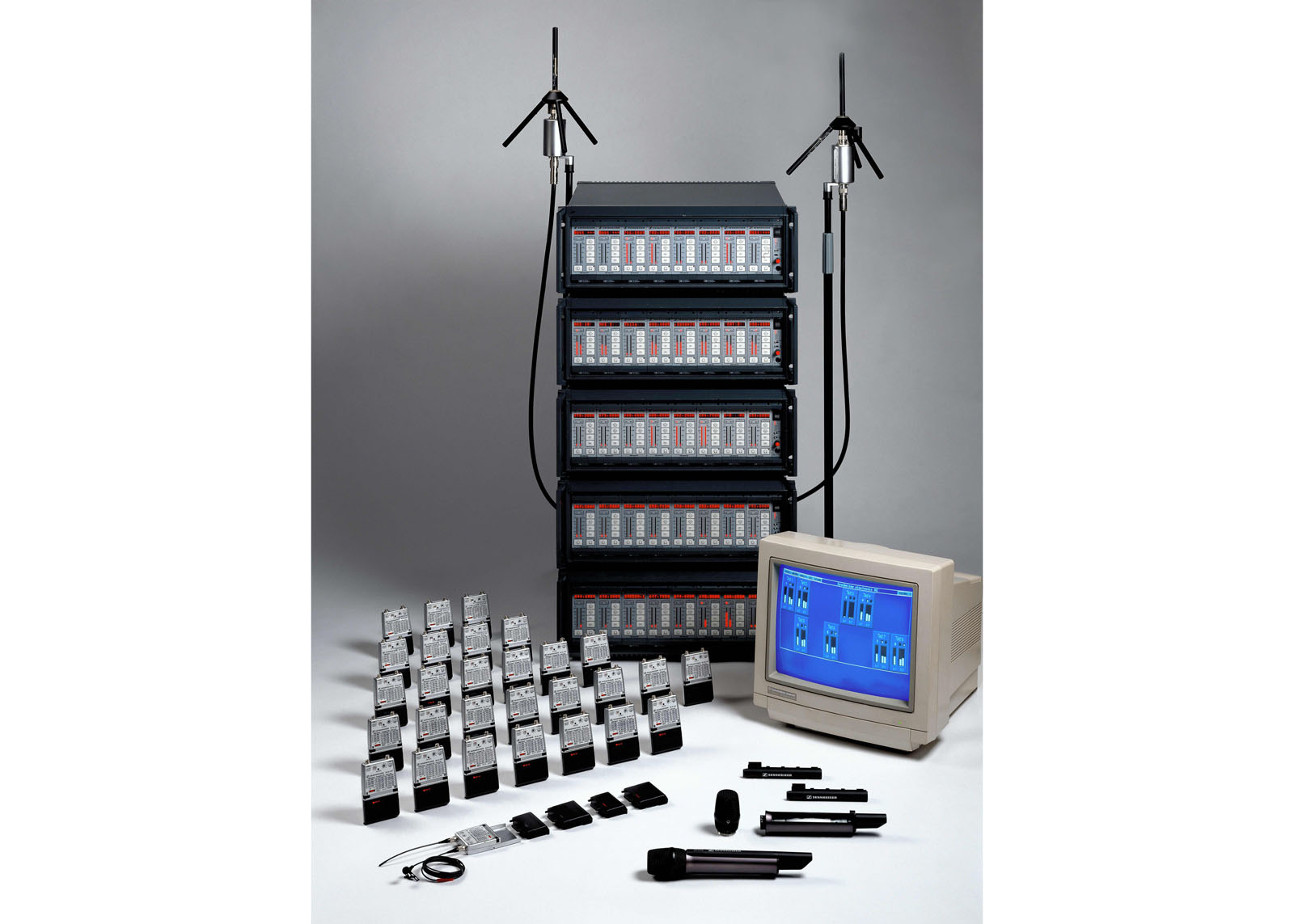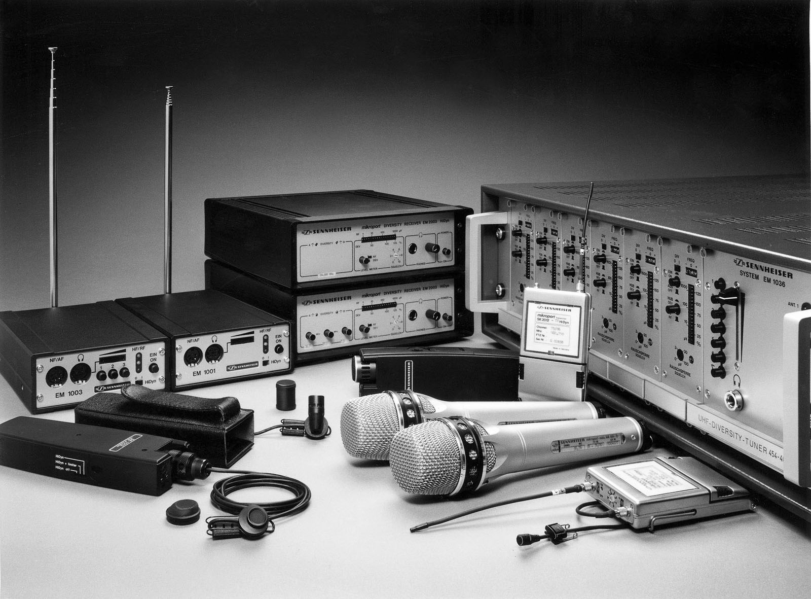 На початку 1990-х Sennheiser представила бездротову багатоканальну мікрофонну систему нового покоління з синтезатором частот. Вона складалася з багатоканального приймача EM 1046, поясних передавачів SK 50 та SK 250, а також портативного ручного передавача SKM 5000 і являла собою рішення, найдосконаліше на той час за своїм функціоналом та загалом за можливостями. Вперше в історії всі аналогові функції приймача керувалися мікропроцесором. Крім того, система також була оснащена найновішою та найефективнішою системою шумопригнічення HiDyn plus. У ті роки бездротові навушники Sennheiser використовувалися для найвидовищніших трансляцій, зокрема прямого ефіру надскладного сходження на Північну стіну гори Айгер.
