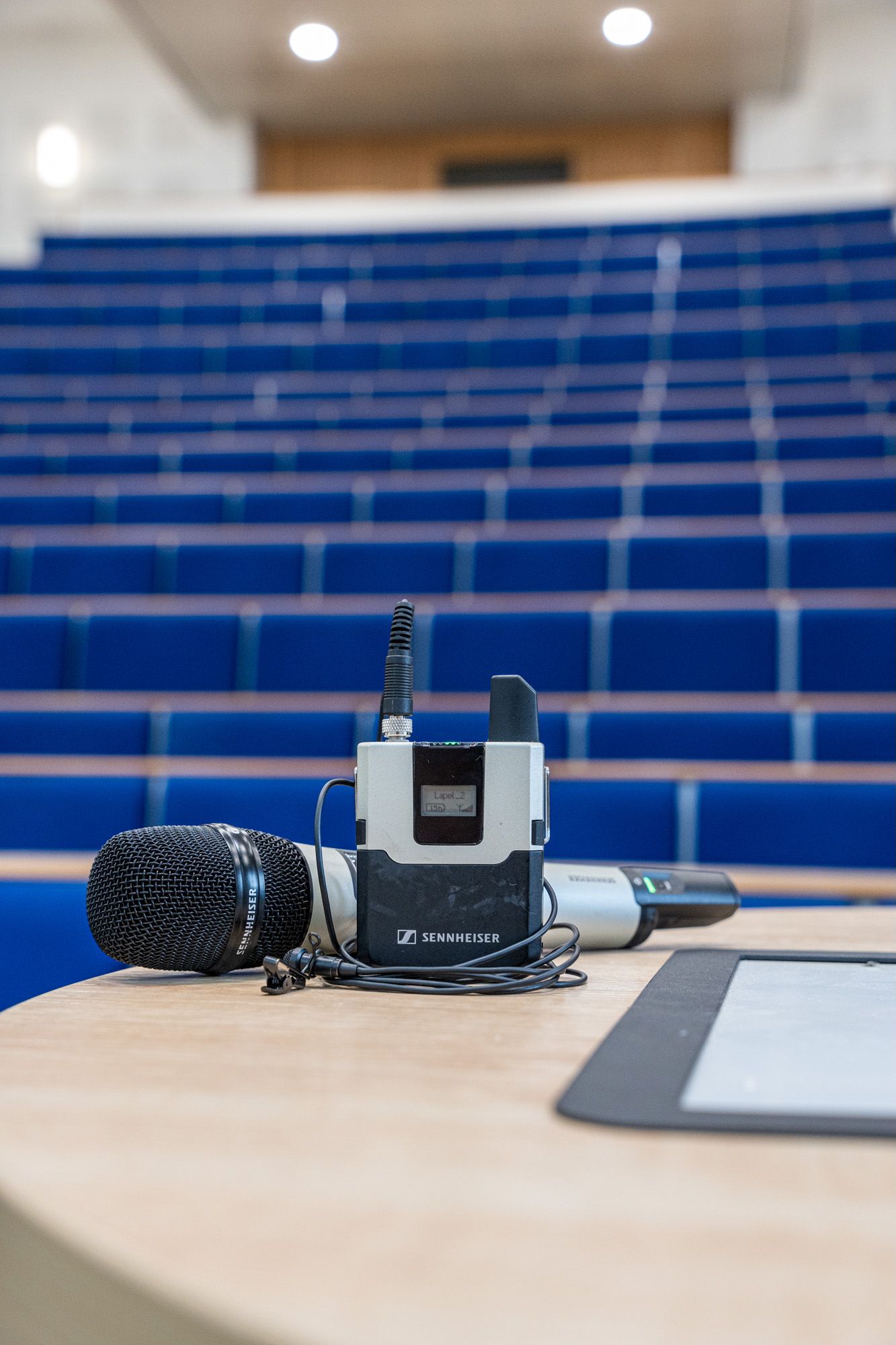 У великих лекційних залах університету також встановлена бездротова мікрофонна система SpeechLine Digital Wireless на 20 каналів. Всі її мікрофони оснащені вбудованими літій-іонними акумуляторними батареями і здатні функціонувати повністю автономно (у будь-якому місці приміщення і без дротів на столах). Сама система працює у безліцензійному частотному діапазоні 1.9 ГГц, має функцію автоматичного вибору вільних частот, функцію усунення перешкод та функцію 256-бітового шифрування AES, що забезпечує надійний захист аудіоданих.
