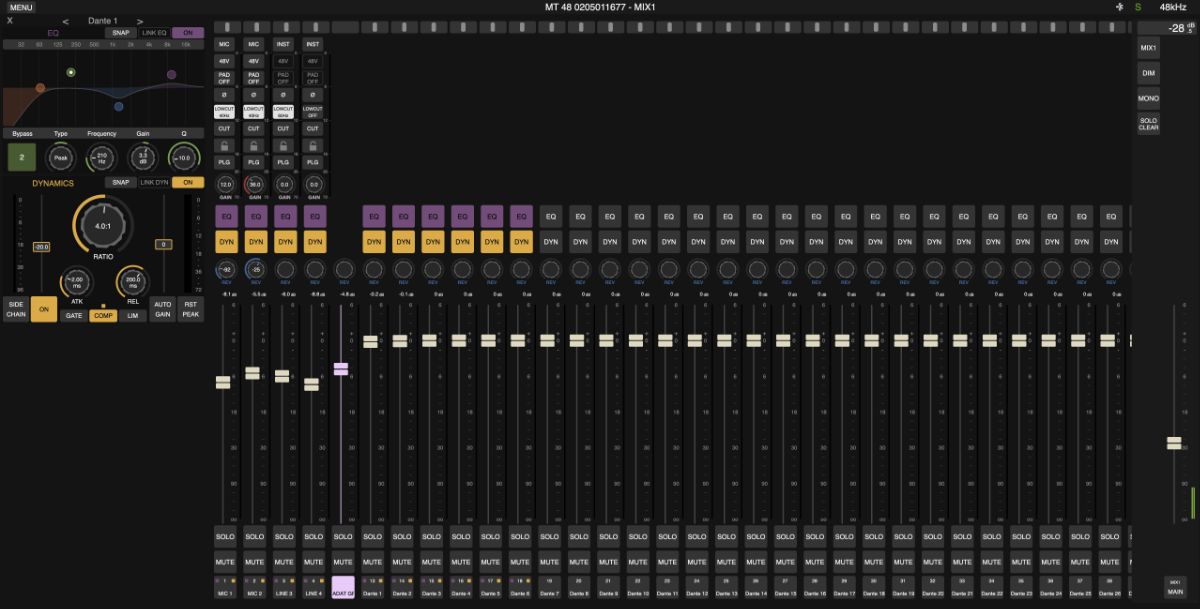 Як і Anubis, MT 48 працює на фірмовому програмному забезпеченні Merging, тобто на таких же самих, зручних і практичних "місіях" (Music Mission та Monitor Mission), а отже й логіка роботи в обох пристроїв дуже схожа. Що ж до підтримки Dante, то вона без жодних ускладнень активується на будь-якому MT 48 із серійним номером від 10000 і далі.