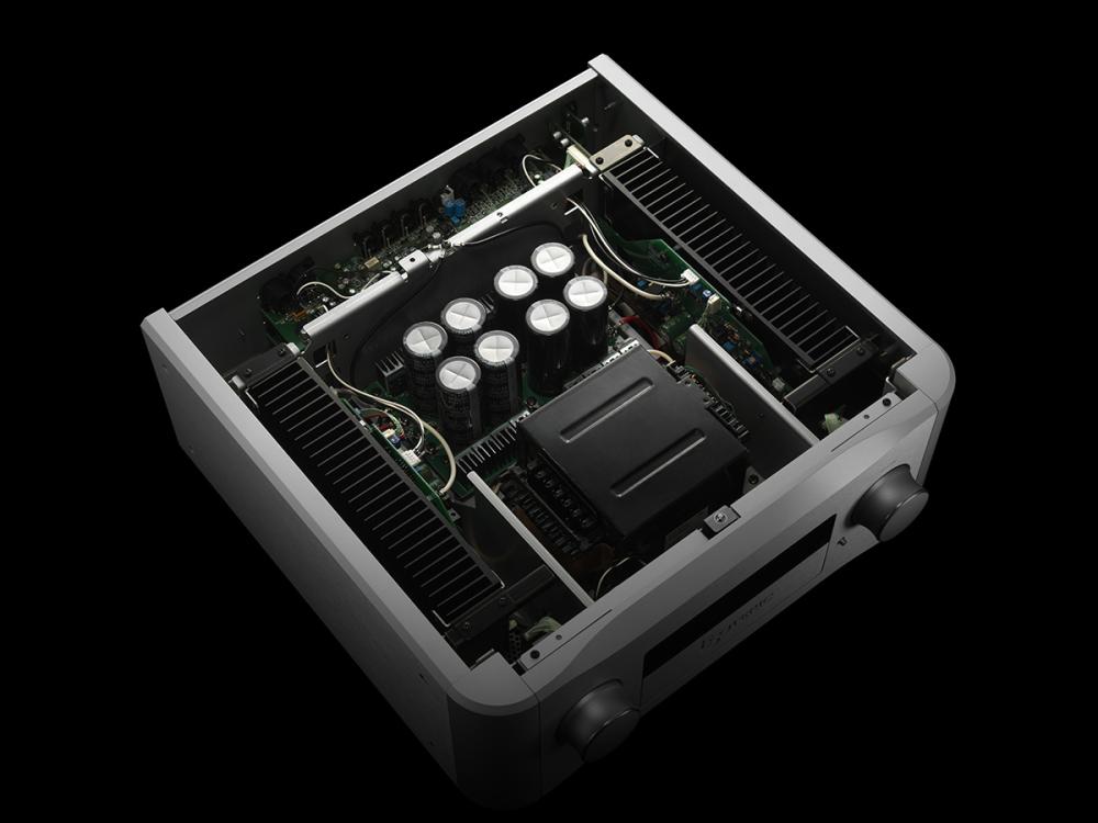 Схема випрямлення потужності виконана у конфігурації подвійного моно, тож лівий й правий канали системи чітко розділені та взаємні перешкоди між ними виключені. Плюс, система удосконалена ще й більш потужними конденсаторами сумарною ємністю 10 000 мкФ на кожен канал.