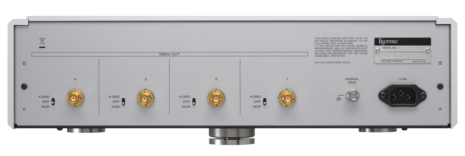 Master Sound Discrete Clock - це новий OCXO-модуль (Oven Controlled Crystal Oscillator, тобто термостабілізований кварцовий генератор), розроблений інженерами Esoteric спеціально для відтворення музики. Особливість його полягає в тому, що цей модуль повністю, починаючи з кастомного кварцового генератора Esoteric SC1 і до системи контролю температури, виконаний в унікальній дискретній схемі. При цьому схема генератора, раніше реалізована більше як модуль загального призначення, була таким чином вдосконалена й ретельно оптимізована у кожному, навіть найменшому її елементі саме з огляду на максимальну якість звуку та якнайвищу його виразність.