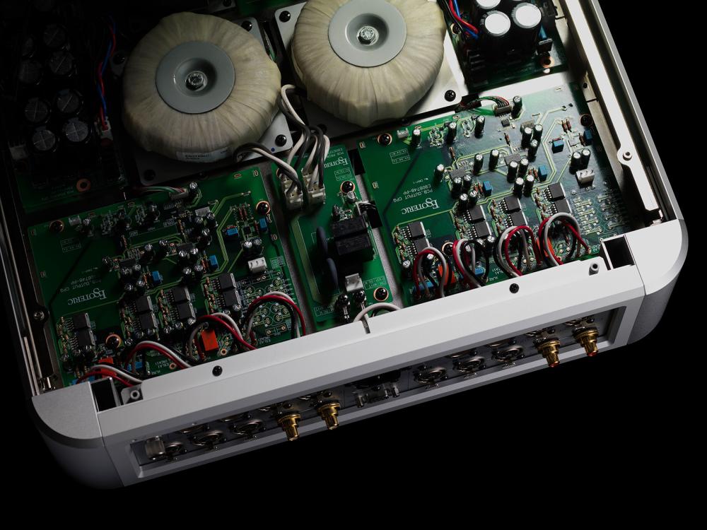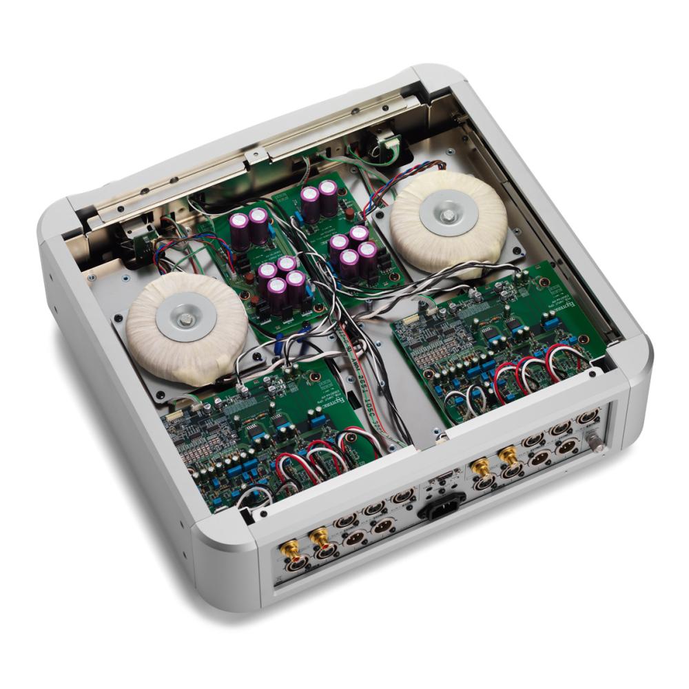- 5 силових трансформаторів: 4 великі трансформатори з тороїдальними сердечниками для аудіосистеми та окремий трансформатор с сердечником R-core для системи керування.