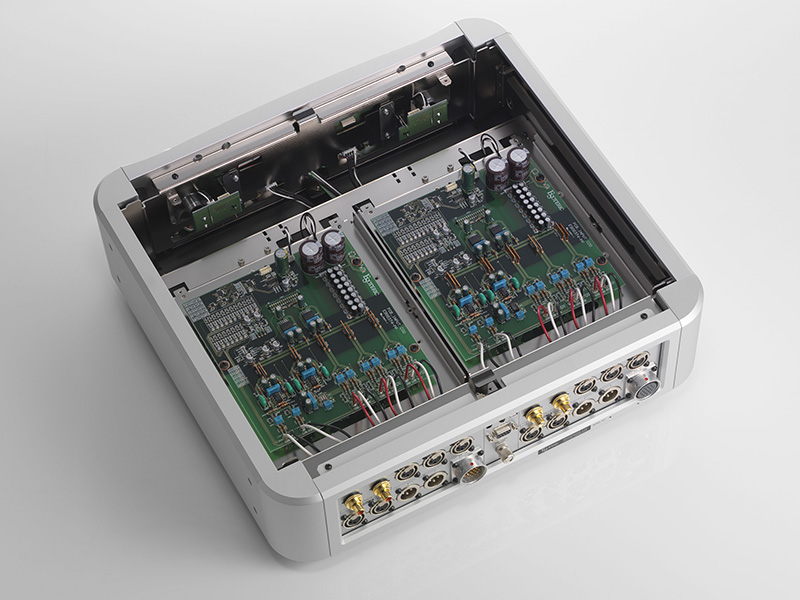 Та попри усю складність цієї технічної колізії інженери Esoteric все ж таки зуміли знайти потрібне рішення, а потім ще й удосконалили його до еталонного ґатунку. Якщо у C1 гучність регулюється 100-ступеневим регулятором із кроком 0.5 дБ, то розроблений спеціально для Grandioso C1X унікальний модуль атенюатора UFA-1792 (Ultra Fidelity) дає змогу регулювати рівень гучності так само плавно і дуже точно - 1120 кроків з інтервалом у мінімальні 0.1 дБ - як у схемі зі змінним опором, і при цьому передає звук із найвищою якістю, як класичний атенюатор з комутацією фіксованих опорів.