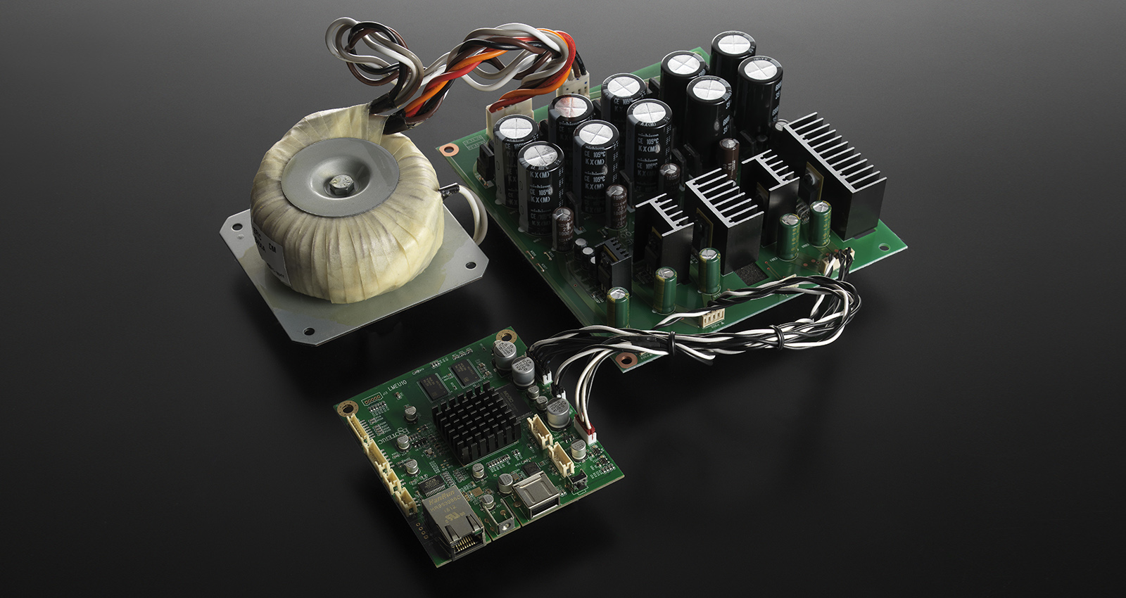 Джерело живлення мережевого модуля - не імпульсне, а лінійне, оптимізоване для роботи з аудіосигналом і у комплексі з фільтруючими конденсаторами високої ємності, діодами з бар’єром Шотткі, суперконденсаторами EDLC загальною ємністю 2 333 333 мкФ та іншими високоякісними компонентами сприяє більш якісному і чистому звучанню.