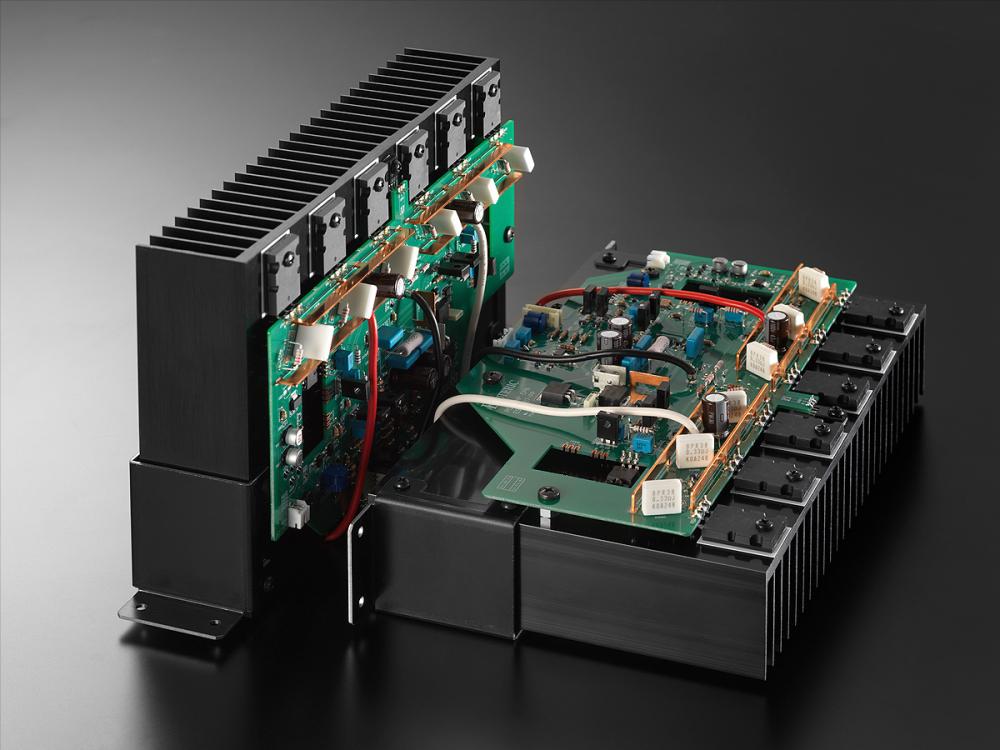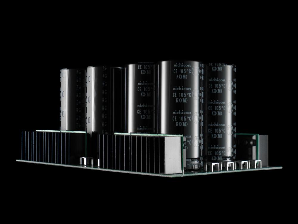 Схема випрямлення потужності виконана у конфігурації подвійного моно, тож лівий й правий канали системи чітко розділені та взаємні перешкоди між ними виключені. Плюс, система удосконалена ще й більш потужними конденсаторами - їх по чотири сумарною ємністю 10 000 мкФ на кожен канал.