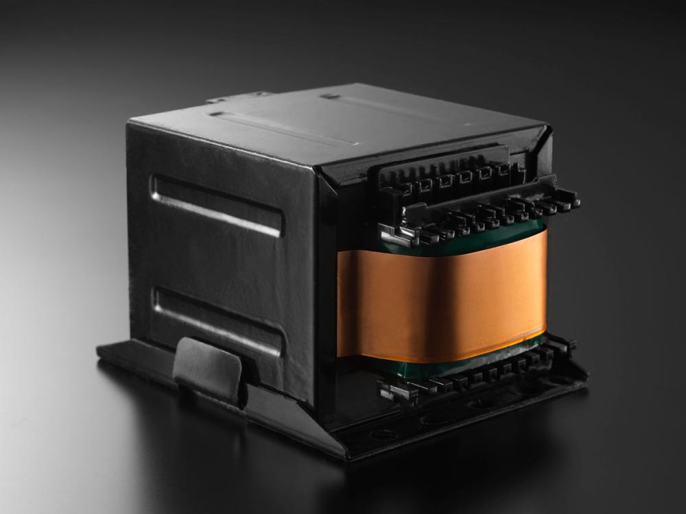 - Силовий трансформатор потужністю 940 ВА з сердечником EI-core швидко реагує на зміни імпедансу динаміків у найширших межах.