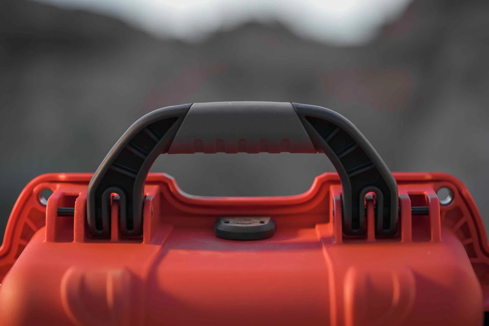 Захисний кейс NANUK 908 має міцну ергономічну ручку зі спеціальним нековзьким покриттям - вона закріплена на сталевих петлях і оснащена механізмом фіксації, тому ніколи не бовтається і не вдарить по пальцях. Крім того, конструкцією також передбачені пара металевих провушин у корпусі й кришці для додаткових навісних замків (звичайних чи кодових), вбудований клапан автоматичного вирівнювання тиску, котрий пропускає повітря (запобігаючи "самозапаковуванню" кейса), але надійно ізолює вміст кейса від вологи й пилу.