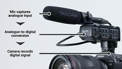 Використовуючи свій багаторічний досвід у галузі розробки аудіотехнологій компанії Tascam, вдалося створити високопродуктивні аналого-цифрові перетворювачі компактного розміру, здатні забезпечувати чистий, позбавлений шумів звук професійного рівня якості. Так при використанні адаптера CA-XLR2d звук із мікрофонів пишеться безпосередньо в камеру, що робить непотрібним етапи синхронізації та постобробки, на яких можуть з'явитися спотворення та паразитні шуми.