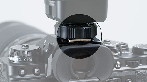 - Живлення на адаптер може подаватися через гарячий черевик безпосередньо з камери (на даний момент адаптер сумісний із моделями камер виробництва Canon та Fujifilm)