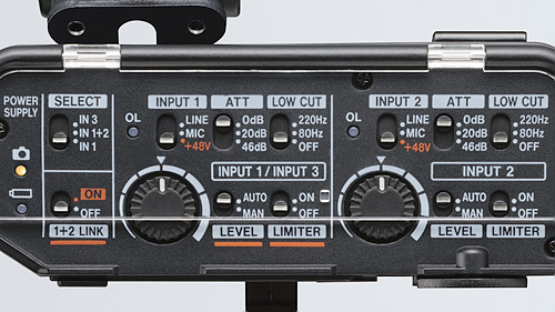 На протилежній від роз'ємів входу стороні зручно розташувалися органи управління функціями обробки звуку, такими як автоматичний рівень, обрізний фільтр низьких частот та лімітер. При записі стереозвуку CA-XLR2d дозволяє налаштувати ці параметри окремо для кожного каналу. Крім можливості тонкого налаштування параметрів, чудова якість звуку досягається і за рахунок використання електронних компонентів професійного рівня, так CA-XLR2d дозволяє здійснювати запис звуку з роздільною здатністю 16 біт/24 біта та частотою дискретизації 48 кГц або 96 кГц.