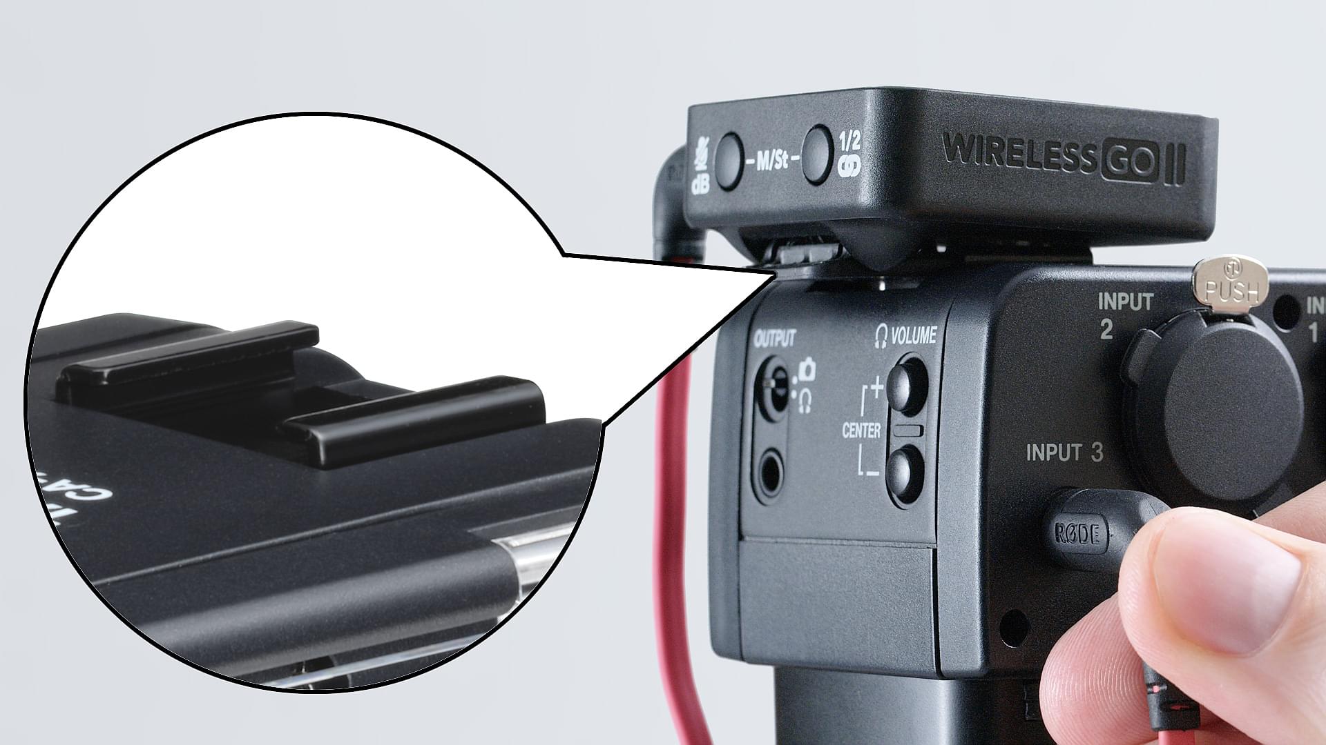 CA-XLR2d настільки універсальний, що ви можете комплектувати його різним аудіообладнанням, необхідним для роботи в конкретній ситуації. Наприклад, холодний черевик, розташований на верхній частині адаптера, дозволяє швидко прикріпити до нього різні типи мікрофонів, бездротових приймачів або передавачів. А спеціальна конструкція перешкоджає передачі на мікрофон сторонніх шумів та вібрацій. Два вхідні універсальні роз'єми типу XLR/TRS і один 3,5-мм стерео міні-джек, розташовані збоку адаптера, підходять для підключення практично будь-якого типу динамічного або конденсаторного мікрофонів, будь то ручний, петличний або направлений мікрофон-гармата.