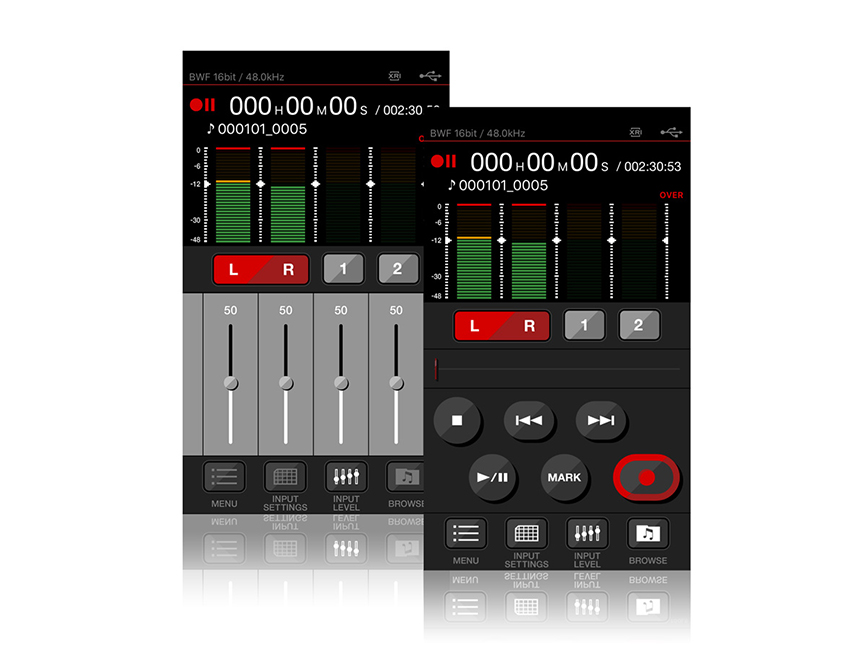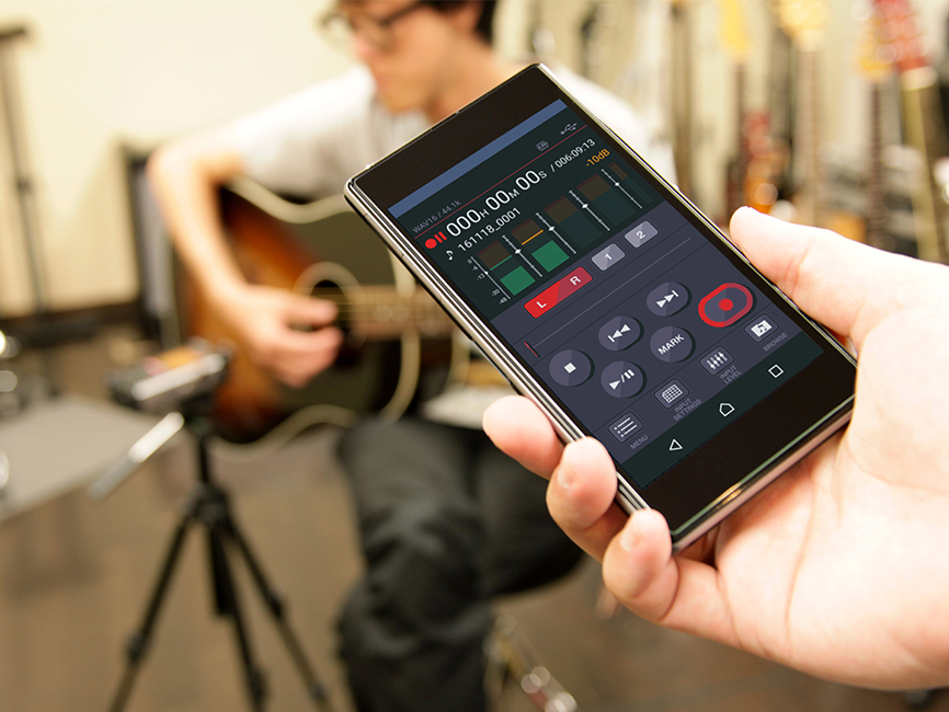 Фірмовий додаток DR Control (на мобільний Android- чи iOS-пристрій завантажити можна безплатно) окрім усього іншого має функцію пульта дистанційного керування для DR-44WLB. Тож, коли того потребує робоча ситуація, рекордер можна просто встановити у потрібному місці приміщення або сцени й потім керувати їм дистанційно зі смартфона чи планшета.