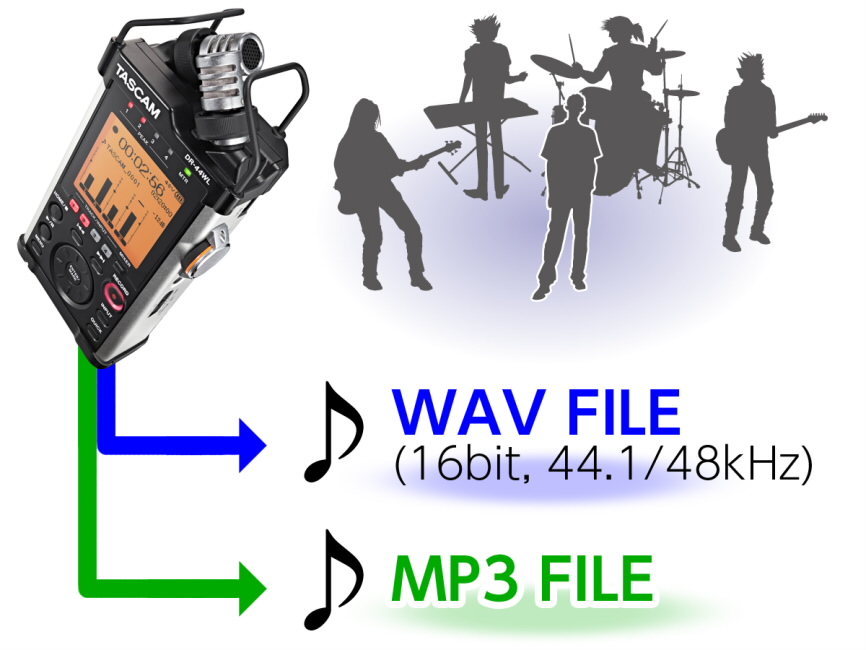 Tascam DR-44WLB дає змогу отримувати стабільно високоякісні записи, навіть коли працювати доводиться із дуже гучними джерелами звуку, зокрема на репетиціях та концертах.