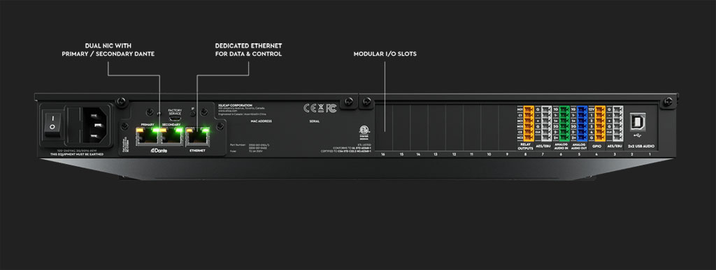 Дві вбудовані карти NIC фізично розмежовують мережі передачі даних та звуку і гарантують належний рівень захисту смуги пропускання. А резервування за потреби виконувати можна як через основну, так і через допоміжну мережі Dante.